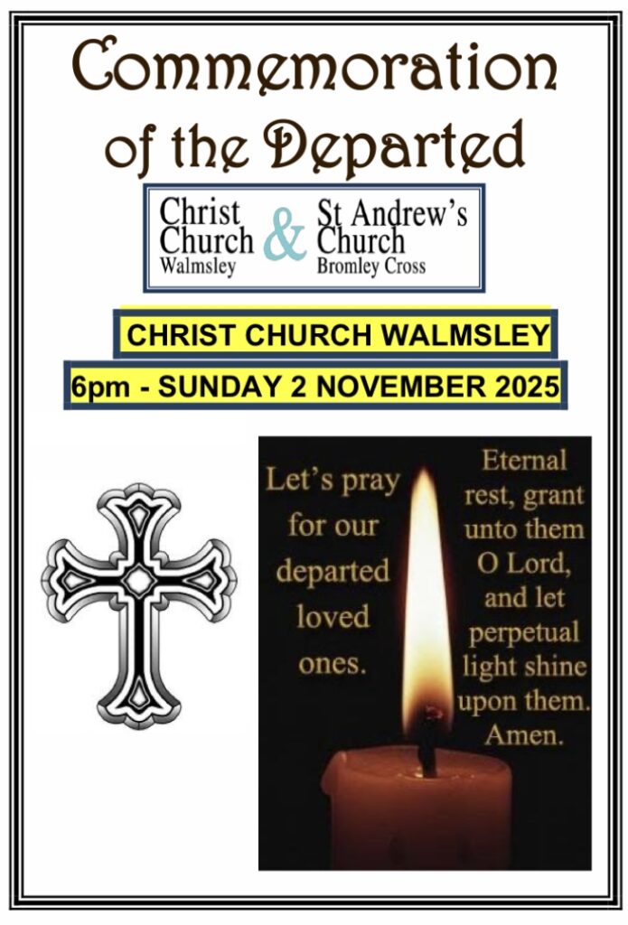 10am: REMEMBRANCE SERVICE at Christ Church Walmsley, followed by Procession to Dunscar War Memorial led by Revd Ian Hepburn