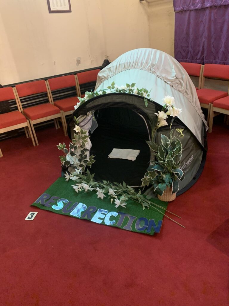 Volunteers then set up Church for the ‘Easter Experience’: six ‘stations’ telling the story of Holy Week from Palm Sunday to the Resurrection of Jesus on Easter Day. The Infants from Year 2 joined us in the morning and Year 5 Juniors in the afternoon, as groups travelled round the church learning about the Easter Story, including the Last Supper when freshly baked bread was broken and ‘wine’ shared 🍞🍷 ✝️